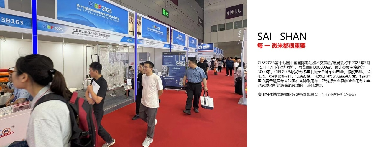 由中国化学与物理电源行业协会主办的“第十七届深圳国际电池技术交流会/展览会”(CIBF2025)将于2025年5月15-17日在深圳国际会展中心隆重举办。本届展会规模宏大,将设立15个展馆,总面积近30万平方米。预计将吸引超过3000家国内外展商参展,并迎来40多万名来自全球的专业观众到场参观洽谈. ac米兰官网粉体携带超微粉碎设备亮相展会,与客户广泛交流。